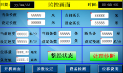 根據(jù)工藝要求,整經(jīng)機需要監(jiān)控畫面,參數(shù)畫面,設備檢測畫面,參數(shù)說明畫面等。